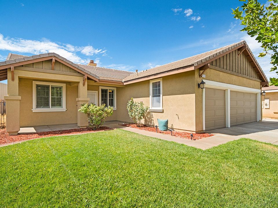 Single Story Home in West Lancaster with 4 bedroom, 2 1/2 baths and a 3 car garage. Features include newly installed faux wood shutters through out, tile entry, kitchen & hallway, carpet in bedrooms. Enter into the spacious formal living & dining room both with recessed lighting. The kitchen has tile counters, center island w/power, stainless steel (sink, dishwasher, oven & refrigerator), along with loads of cabinets all this and opens to the family room w/gas fireplace. Sliding glass door from the informal dining area leads to the low maintenance backyard w/paver patio & retractable awning. The large main bedroom has ceiling fan, shuttered windows w/view of backyard. The bathroom has dual sinks, separate garden tub & stall shower w/rain glass door. Large walk-in closet rounds out the main bed & bath. There are 3 additional bedrooms all w/ceiling fans, shutters & raised panel doors. Full bath w/dual sinks & tub/shower combo. Indoor laundry w/tile counter top & cabinetry. A Must See!