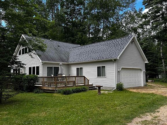 Welcome to 6300 Woodland Drive, a charming Chalet-style 3-bedroom and 2.5-bathroom home. This house has multiple windows, skylights, and a cathedral ceiling to let the natural light in. The wood-burning fireplace with beautiful stone front is cozy on cool days. The house is nestled on two lots on the corner of Woodland Dr. and Greenglen St.. This sale includes four lots (44, 45, 129, and 130), two of the lots located directly across the street, wooded, with the potential for future development. The house is perfectly secluded by trees, providing unparalleled privacy. As part of an HOA, this home offers access to an all-sports lake (Doc and Tom Lake), pavilion, clubhouse, in-ground pool, and many other amenities. **Property Features:** - **Location:** 6300 Woodland Drive - **Lot Size:** .93 acres - Includes four lots (44, 45, 129, and 130) - **House Size:** 1,356 sq. ft. - **Bedrooms:** 3 - **Bathrooms:** 2.5 - **Garage:** Two-car attached garage - **Decks:** Wrap-around deck and a private deck off the primary bedroom - **Outdoor Space:** Fenced-in area, perfect for pets, fire pit - **Additional Structures:** Storage shed - **Privacy:** Secluded by trees **Interior Features:** - **Move-in Ready:** The house is in pristine condition, ready for its new owners. - **Primary Bedroom:** Located on the main floor with an en-suite full bathroom. - **Laundry:** Includes new washer and dryer. **Development Potential:** Two of the included lots are wooded and offer great opportunities for future development or expansion, adding value to the property. **Summary:** This beautiful property combines privacy, convenience, and potential for future growth. Whether you're looking for a move-in-ready home, a vacation home, or an investment opportunity with development possibilities, 6300 Woodland Drive has it all. Don't miss out on this unique chance to own a versatile and private home.