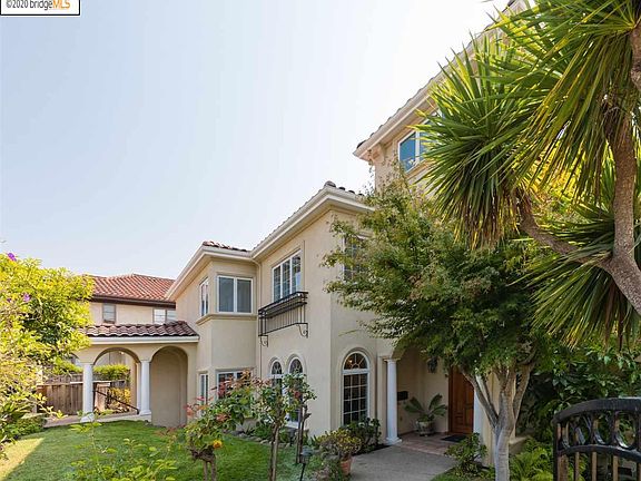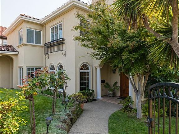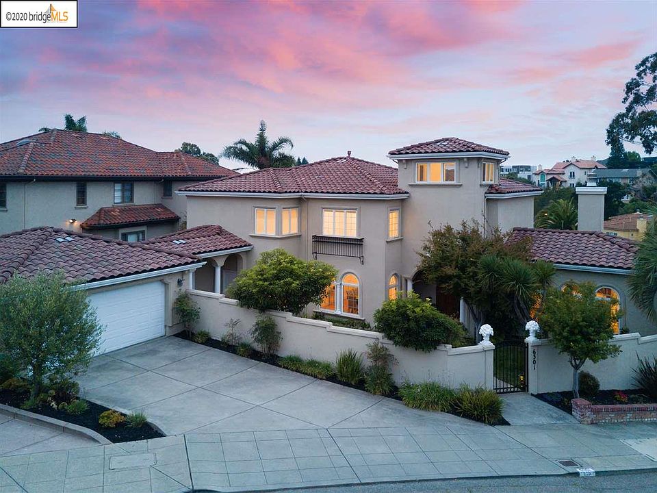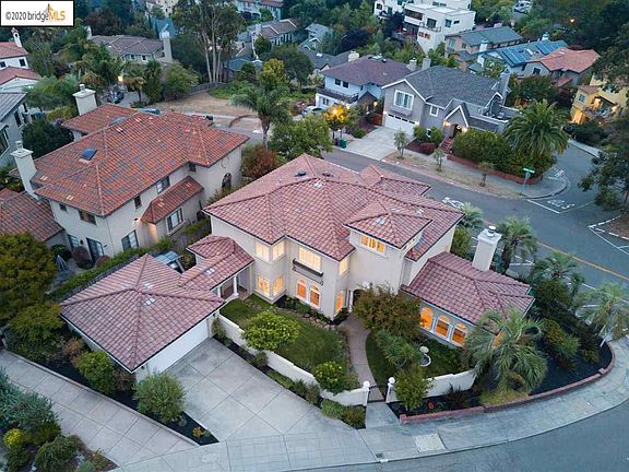 Sited on a large, corner lot in Upper Rockridge and gated for privacy, this elegant 4+ bedroom, 3 bath Mediterranean is sure to captivate with its comfortable style. Enter the gate to lush landscaping and beautiful arches that lead you to the front door and level entry. Inside, soaring ceilings, hardwood flooring, gracious archways and natural light immediately impress. The living room features a fireplace and bay window overlooking the gardens. Adjacent to the formal dining room, the chefs kitchen is open to the family room with fireplace and opens to the front, side and rear yards; the perfect ambiance for indoor/outdoor entertaining. An oasis all it own, the yard features hot tub, outdoor dining and lounge area, room for play and gardening and expansion potential in the back. A bedroom and full bath complete this level. Upstairs, 3 bedrooms and 2 baths include the impressive Primary suite with walk-in closets and spa bath. Don't miss the bonus play space with beautiful views!