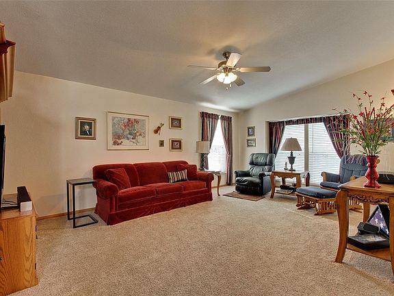 OPEN HOUSE Saturday, Jan 26, 11-1pm. IDEAL location across from the clubhouse fitness center & pool, & steps from the community park/playground. If you have been looking for a new ranch style home, don't miss this opportunity! NEW ROOF just installed! This open floor plan features a living room, kitchen & dining areas. Eat at the breakfast bar or in the dining room. Extend your dining to the patio in a beautifully maintained yard. Large master suite includes both soaking tub and walk-in shower. Two more bedrooms share a full-bath. An oversize attached 2-car garage and a large shed offer a lot of storage. Single owner has used Norvex products exclusively for all interior cleaning. This home is meticulously maintained, move-in ready and a tremendous value you won't want to miss! Prairie Greens is a land lease community. The monthly fee ($625) is the land lease fee that includes all community amenities.
