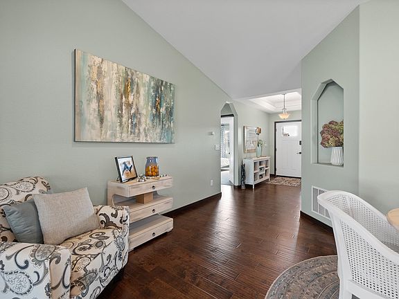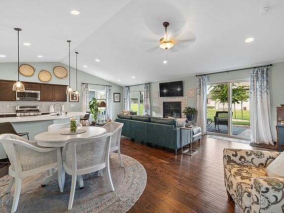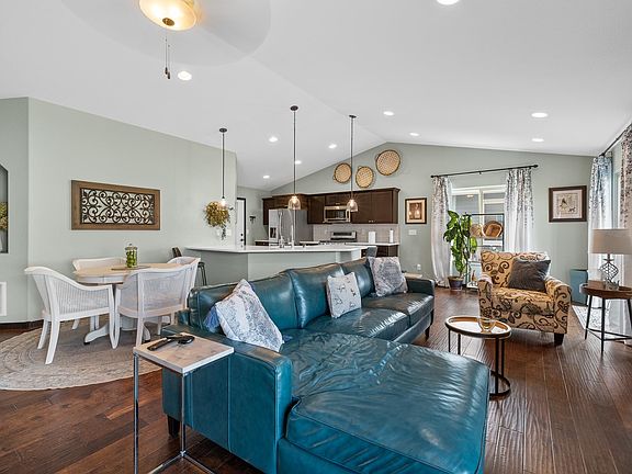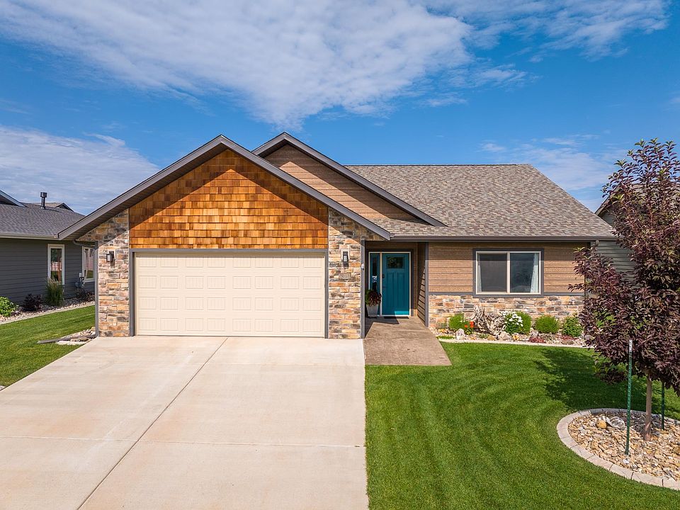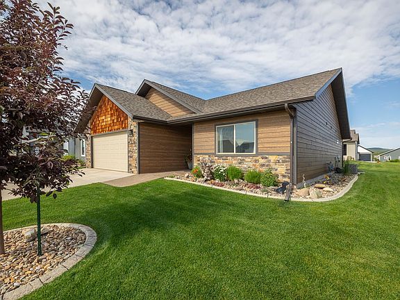 Listed by Shauna Sheets, KWBH, 605-545-5430. Enjoy one level living in this ZERO entry, Howie Construction home in the Red Rock Village subdivision! *This one owner home has been meticulously maintained and the top quality finishes and recent updates are sure to impress *2 bedrooms, 2 bathrooms and 1,449sqft await you *Beautiful wood floors throughout the open concept main living space, accented by vaulted ceilings and great natural light *Comfortable living room with gas fireplace and two slider doors to the back patio *Large kitchen with new quartz countertops, a Samsung stainless steel appliance suite, mocha cabinetry with soft close drawers and a walk in pantry *Plenty of eating space at the large island or in the cozy dining area *Primary suite in back corner of the home for privacy- offering a large bedroom with ensuite bathroom with 2 sinks, a floor to ceiling custom tile walk in shower, and a walk in closet with laundry hookups *1 additional bedroom and 1 bathroom complete this home *Good storage space throughout *Attached 2-car garage is finished, has a floor drain and a hot/cold water spigot *Added living space outdoors on the 10'x15' painted concrete patio, covered by 2 Toja Grid pergolas and bordered by rock planters with curb-a-yard accents *Great curb appeal out front with a unique blend of cedar shake, stacked stone and hardboard siding, a covered front stoop and tasteful landscaping throughout. This home is move in ready- call today!