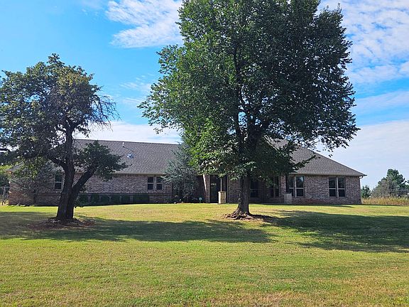 Experience country-style tranquility with city convenience in this beautifully maintained, single-level home on 5 scenic acres. Perfectly situated between I-44 and I-235, you will enjoy easy access to Edmond, Nichols Hills, and Downtown Oklahoma City, all just minutes away. Built only 11 years ago, this home combines modern comfort with wide-open space. The inviting floor plan centers around a spacious living area that flows seamlessly into the kitchen and dining space, creating a natural hub for everyday living and entertaining. The kitchen features an oversized pantry and storage area, while the attached two-car garage connects through a practical mudroom and coat drop zone. The primary suite offers a relaxing retreat with dual vanities, a walk-in shower, a deep soaking tub, and a private water closet. A large walk-in closet connects directly to the laundry room for effortless daily routines. On the opposite side of the home, three additional bedrooms, including one ideal as an office or study, provide plenty of flexibility. Step outside to a pergola-covered patio overlooking expansive views and spectacular sunsets. Best of all, lawn care is included, so you can enjoy the land without the upkeep. This is a rare opportunity to have privacy, space, and convenience all in one. Schedule your showing today!