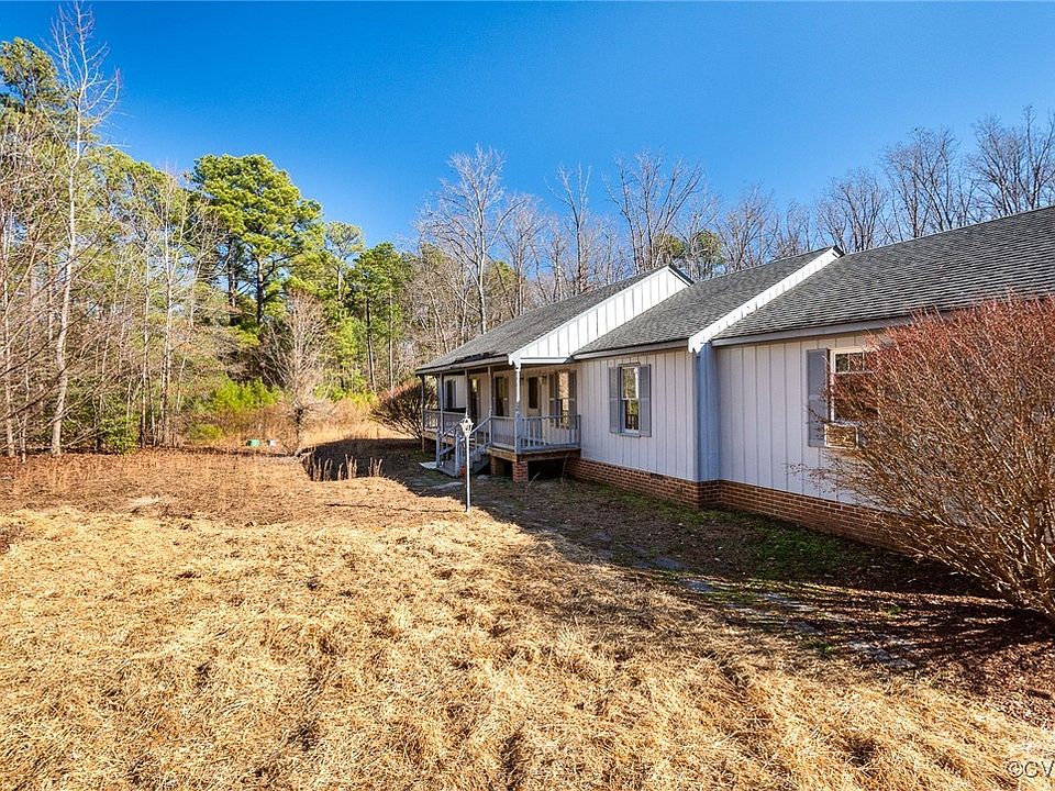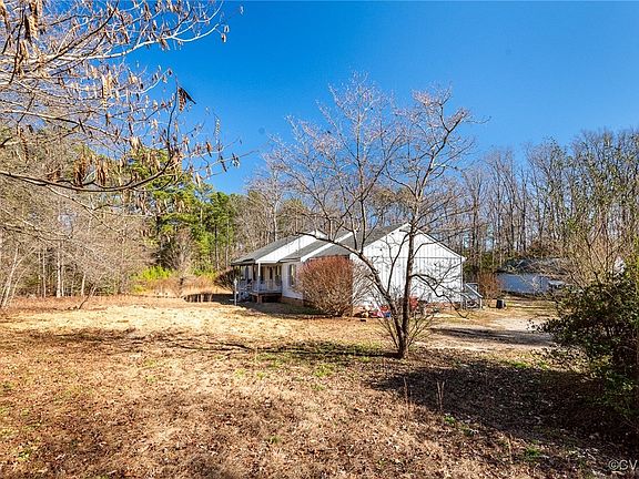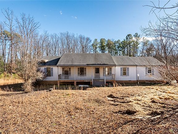 One level living on 6.5 acres, zoned Agricultural! This solid rancher in South Chesterfield offers privacy and convenience on a sprawling wooded lot, set back from the road behind a dense treeline for added privacy and noise reduction. Three bedrooms (one of which was converted from an attached garage and could be changed back should you choose), two full baths, eat-in kitchen with bay window, formal living room, den and sunroom. Large deck at the rear of the house is the perfect spot for cooking out and entertaining. Across the backyard you'll find a 960 square foot garage -- would make a fantastic workshop with all the space you could want. New carpet in the primary and sunroom and fresh paint throughout. This house is ready for your touches to make it your own and is priced to allow for your chosen updates. Don't miss this opportunity to start building equity now!