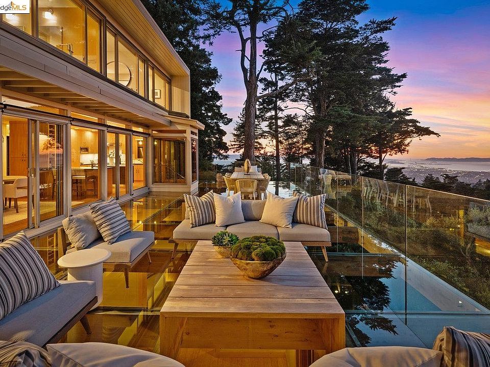 Mid-century elegance converges with modernity in Sky Haus, an architectural marvel that epitomizes the essence of refined living. Here, sleek lines and geometric precision harmonize with natural elements, crafting an ambiance of subtle yet profound elegance. The space exudes a contemporary allure while maintaining a sense of intimacy, inviting one to luxuriate in the seamless blend of cutting-edge design and timeless comfort. Every corner is bathed in natural light that enhances the fluid connection between the interior's luxurious confines and the tranquil beauty of the outdoors. The masterpiece of this home is the 1,000-square-foot glass veranda, an extraordinary feat of design constructed from 28 tons of industrial glass. From this vantage point, panoramic views sweep across Montclair to the Bay. Revealing the lower level through the wood and glass ceiling, the home truly becomes one-of-a-kind. Yet, Sky Haus is more than a mere residence—it cultivates a lifestyle. It embraces the pinnacle of modern living while reverently acknowledging the natural world. Nestled in the coveted enclave of Piedmont Pines, this home is a sanctuary where luxury and refined aesthetics coalesce effortlessly, enriching the lives of those fortunate enough to reside within and beyond its walls.