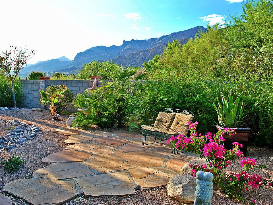 CLASSIC burnt adobe, territorial style home with close up Catalina Mountain/Finger Rock views! From the inviting entry throughout, this home evokes a casual & gracious lifestyle. Professionally updated with natural slate flooring, granite counters & stone baths. This home provides easy living and entertaining. Even the laundry room has a fabulous Mt view... and a wine fridge! The family room flows effortlessly onto back patio & low maintenance yard. Large master bedroom with his/hers closets. Move in ready!! Dist 16 schools. Junior Olympic size Community Pool, Rec Center and Tennis Courts.