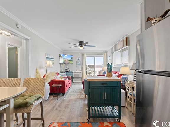 Amazing opportunity to own a beautifully updated 2 bedroom/2 bath MARSH and CHANNEL view unit in North Myrtle Beach, with beach access right across the street!! Just steps to the point at Cherry Grove. The unit itself has been extensively renovated to include 2 full bathrooms, one with a full tile shower and second with a bath/shower combo with tile backsplash. New toilets, faucets, and paint in the bathrooms. Kitchen boasts new stainless appliances and microwave, lovely granite countertops and backsplash, and new kitchen table, small white pantry, and butcher block cart. Popcorn ceilings were all smoothed and painted along with almost all of the interior walls of the home. Luxury vinyl plank throughout the main living areas. All new beds, gel mattresses, and covers. New fans with lights, new TVs, and new electric fireplace. The building and amenities have also been recently upgraded with a roof replacement in 2019, upgraded pool space with fencing and new concrete surround (2023), and brand new sea wall (2023). Come and see this home soon as it certainly will not be on the market for long, and be sure to check out our virtual matterport tour online!!