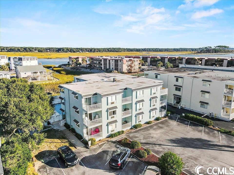 Experience coastal paradise with this beautiful top floor, end unit condo located only steps away from the sandy beaches of Cherry Grove. You will enjoy the amazing ocean views from both the living area and the primary bedroom. The living area has a good mix of coastal living and comfort all in one. Feel the breeze while sitting on the balcony enjoying the ocean views across the street. A rare and convenient feature of this unit vs. others in this building is the private washer and dryer located in the storage unit to the left of the front door. If you are not looking to go on the beach another great benefit for this building is a recently updated pool and lounge area overlooking the marsh. A few small steps lead into the marsh allowing for easy access to kayaking or canoeing into the Hog Inlet.