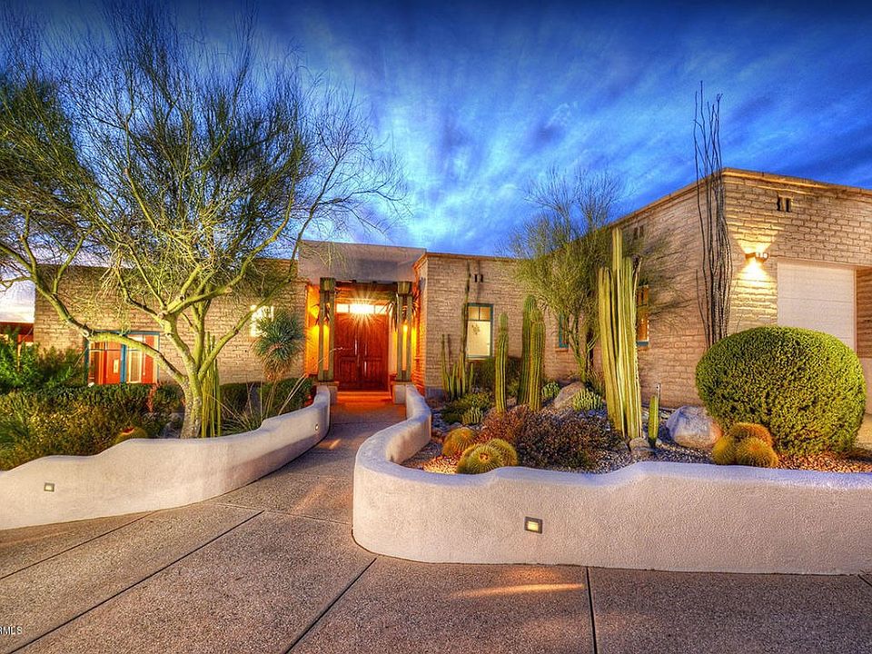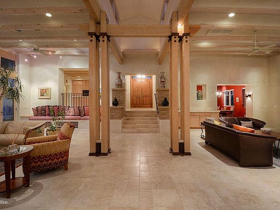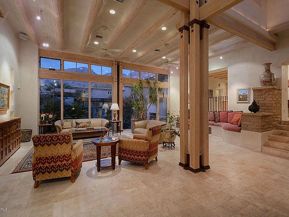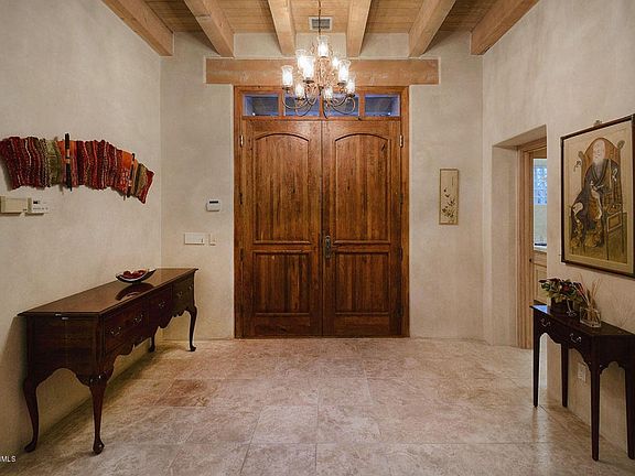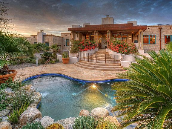 La Paloma at its finest. This territorial style mud adobe home is one of a kind. The grand foyer opens up to a large great room w/fireplace, wet bar & many views. Spacious kitchen has hand painted tiles, large island with cook-top & cozy beehive fireplace. Entertainer's dining room w/views of the beautiful landscaped yard & pool. Home features Lutron lighting system and unique metal art throughout. Master has his & her bath combo w/common walk-in shower, and two closets. Generous guest bedrooms are en-suite. Den w/mesquite floors can double as an extra bedroom. Guests will love the 886 sq ft well appointed separate house w/mini kitchen & mtn. views. Enjoy Tucson's sunsets from the back patio with fireplace, overlooking sparkling pool. Bonus 4 car garage w/extra space and storage.