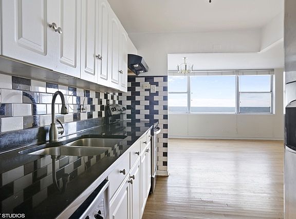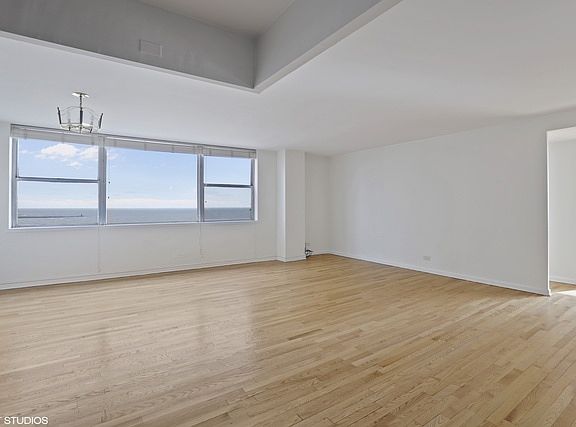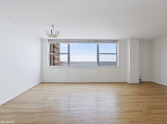 Corner unit has East facing over looking lake Michigan, beach, and skyline views from Evanston to Indiana. Highly upgraded kitchen and bathrooms Assessment includes heat, a/c, basic cable, tv. Bldg offers 24 hr doorman, Exercise room, Sundeck, Laundry room, on site Manager/ Engineer. Minor work needed for floor in kitchen. Seller could give buyer credit for floor. Parking for rent in building, $85 outside, $145 inside, no waiting.
