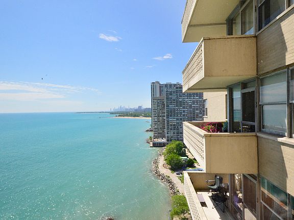 View our virtual 3D tour! RARELY available and one of the largest 1BR floor plans in the building, this Sheridan Road condo with unobstructed east and southeast exposure truly has one of the best views in the city. Kept in meticulous condition, this unit features a large living and dining room combo, hardwood floors, stainless steel appliances, Bosch dishwasher, double oven, marble master bath, additional powder room and custom barn door closet for in-unit storage. The extra large bedroom is situated right next to the water so you can open your window and listen to the waves crash on the rocks below. Monthly HOA includes heat, AC, water, basic tv/cable, internet, doorman, on-site management, gym access and a completely rehabbed rooftop deck. Valet garage parking is available as well. Located just blocks from Whole Foods, ALDI, Target, Loyola, Granville Red Line, Gino's North, and Walgreens, this building has it all!