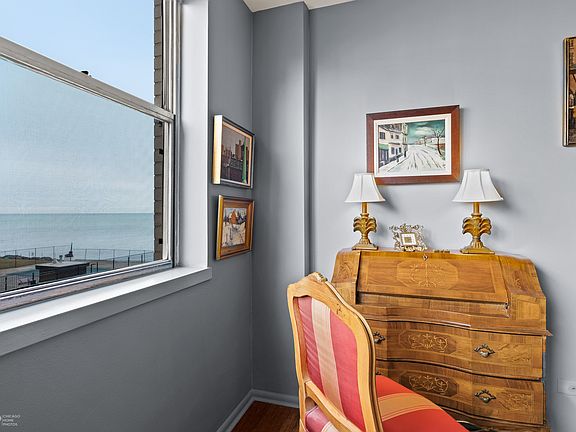 Largest 2 bedroom, 2 bath floor-plan at Edgewater's popular Shoreline Towers with NE and SE views (lake views from the living room, dining room, and bedrooms). The owners have made many updates in this warm & inviting home, including a remodeled kitchen with all stainless steel appliances, bamboo hardwood floors throughout, California style closet systems in the bedrooms, new electric panel, new paint throughout, custom shades on all the windows, and remodeled shower in the 2nd bathroom. The dining room is the largest in the building and the living room is also massive! Both bedrooms can easily accommodate king size beds and large furniture with room to spare. The condo boasts 9 closets including a large walk in utility closet and a pantry for dry goods. Shoreline Towers is one of the best run buildings on north Sheridan Rd with a newly remodeled party room, newer sundeck with wifi, all new washers and dryers in the laundry room, a 24/7 Doorman, onsite manager and engineers, a receiving room with an attendant, and an incredibly well funded reserve account. Come Home!