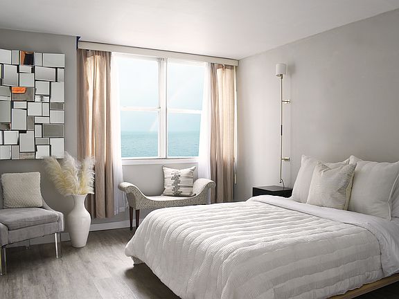 This stunning 1-bedroom, 1 bathroom condo is located in a high-rise building in the Edgewater neighborhood of Chicago. This unit boasts breathtaking views of the glistening lake from every room, providing the perfect backdrop for modern urban living. Step inside to discover a living space that is bright, spacious, and perfect for entertaining. The living room features large windows, which let in an abundance of natural light and offer stunning views of the lake. The space is complete with luxury vinyl plank flooring and a stunning chandelier which adds to the modern feel of the condo. The kitchen is fully equipped with stainless steel appliances, sleek countertops, and ample cabinet space. The cabinetry is made of high-quality wood with pull out shelves and glass features. The bedroom is cozy with a large window that also overlooks the lake. The bathroom features a large vanity, a bathtub, and modern fixtures. Residents of this high-rise building have access to top-notch amenities, including a fitness center, a rooftop deck, valet garage parking, and a 24-hour doorman. The building is conveniently located north of downtown Chicago, with easy access to restaurants, shopping, and entertainment options. Public transportation is easily accessible, with several bus lines and the Red Line train nearby. Don't miss out on this once-in-a-lifetime opportunity to live in luxury with breathtaking views of the lake in one of Chicago's most vibrant. Creative financing available.