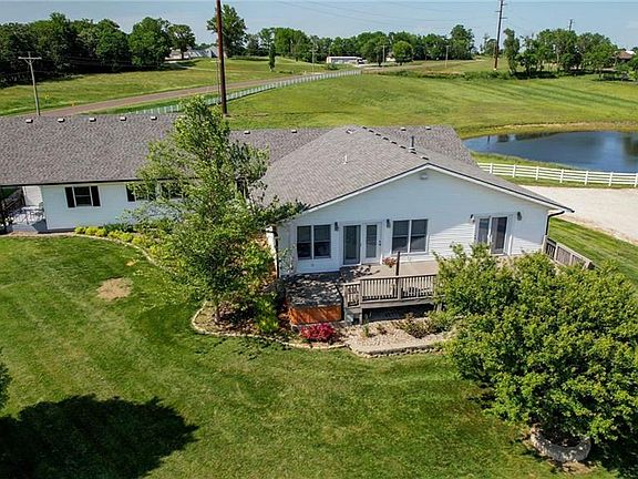 2 ponds, a meandering creek, a lush tree line, and the beautiful landscaping around the home offers an idyllic setting, and endless possibilities. All on a paved road minutes from Pineview Country Club, and Atchison.