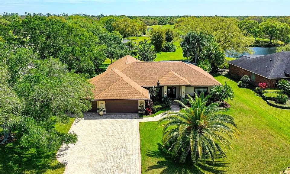 NEW PRICE_Welcome to River Club, where you'll discover this meticulously renovated home gracefully situated on almost an acre of land, boasting scenic golf course and partial lake views. The current owners have spared no expense in updating this residence, with recent improvements including a 5 year-old new roof, 1.5 year old HVAC system, and impact windows and doors. Enter through the double entry doors only to discover a beautiful home with gleaming engineered hardwood flooring. The modern kitchen beautifully appointed with sleek wood cabinetry (installed in 2020) with some glass front doors, and top-of-the-line appliances. The center island serves as both a practical workspace and a cozy breakfast bar, seamlessly connecting to the family room adorned with vaulted ceilings and expansive bay windows framing the serene surroundings. Retreat to the luxurious owner's suite, complete with a generously sized walk-in closet and a renovated bath featuring a large walk-in shower enclosed with glass panels. The enclosed Florida room, with travertine marble floors and entire wall of sliding glass doors, offers a tranquil space for year-round relaxation and leads effortlessly to the screened lanai where a sparkling swimming pool awaits. This home also features a formal dining room, a formal living room with sliding doors opening to the Florida room, two guest bedrooms, and a full bathroom with newer countertops. Outside, the stone patio provides the perfect setting for outdoor entertaining amidst lush landscaping. Additional highlights include, laundry room with washer, dryer and laundry tub, guest powder room, 3 car garage with ample storage areas, recently refreshed interior and exterior with new paint, lush landscaped grounds on all sides, gutters, tankless water heater and paver walkway and driveway. River Club, a deed restricted golfing community, boasts low HOA fees, no CDDs, and access to top-rated schools, as well as convenient proximity to entertainment, shopping, theaters, hospitals, and major transportation routes. Don't miss this opportunity to make this meticulously cared-for home yours. Room Feature: Linen Closet In Bath (Primary Bedroom).