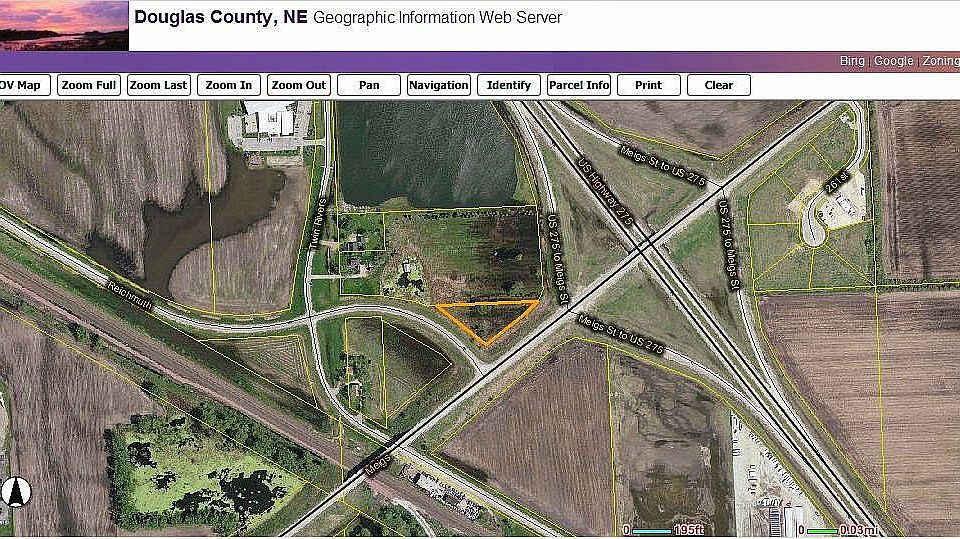 1.16 acres at the entrance to Valley Nebraska. Vacant Land in Triangle Shape at the intersection of East Meigs Street and Reichmuth Road. Parcel # 0115750017 Douglas County.