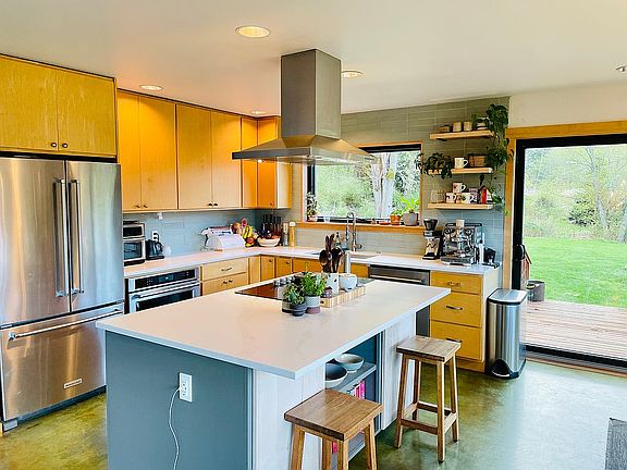 Renovated modern ranch home on 10 beautiful acres of Whidbey Island. 1200 sq ft heated shop and a natural pond.