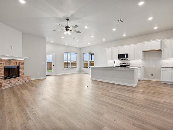 Buy NOW and get up to $10,000 Use-It-Your-Way Cash! This inviting 2050 square foot home echoes "Welcome Home" with spaciousness to spare! The 4 bedroom, 2 bath home is perfect for growing families or those that need a little extra room for an office or hobbies. The living area urges you to come in and stay awhile with the open concept, 10-foot ceilings and corner brick fireplace. The spacious kitchen features an island large enough for additional seating for family dinners and the dining room boasting tons of natural light. The generous primary suite exudes relaxation with 10-foot ceilings, a roomy walk-in closet, and bath featuring double vanities and a separate tub and shower. Front yard sprinkler and sod is included!