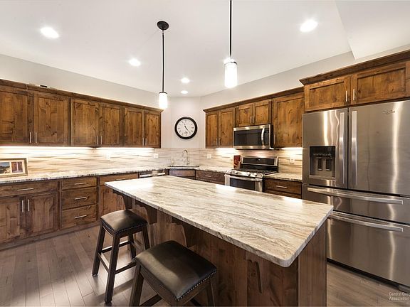 Quality built one story kept immaculate on the West Side. Great location in Ponderous Pines close to river trail. High end finishes, granite slab, hardwood throughout, full interior rock wall with custom built in cabinets. Large master, upgraded glass and tile shower. Decking along the whole back of the house. Front and back yard landscaped and fenced. Large three car garage. High end Kitchen Aid Stainless Steel appliances. Skylights, ceiling fans, office area. Upgraded insulation and A/C.