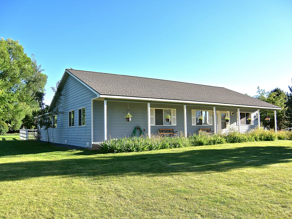 Immaculately maintained home in the well loved neighborhood of Crestmoor. This ranch style home sits on a lush acre of ground with irrigation. Meticulously cared for landscaping features lots of mature trees, shrubs, perennials, and a gorgeous lawn. Four bedrooms, plus a very large flex room that could be a in-home gym, office or craft room. Three full bathrooms and a powder room. The master suite is very spacious with 2 separate closets (1 walk-in), dual vanity, large tiled shower and separate tub. The laundry room is very big and has enough room for a sewing table. Lots of extras in this home, including hickory flooring, gas fireplace, 6-zone in-floor radiant heating, insulated floors & interior walls for quiet living & efficient heating & cooling. Spacious kitchen and dining room. Fenced in area for pets, large patio offering privacy & an excellent entertaining space. Natural gas to the barbecue/grill on the rear patio. Barbecue is included. Lighted & fenced RV storage site. The home has a four car attached garage with extra length for larger vehicles and extra width for easy access to cars and the built in storage shelves that are along the back and both side walls. Easy access to downtown Montrose yet located on the desirable edge of Spring Creek Mesa. Enjoy the private 23 acre common area with stocked ponds, abundant wildlife and hiking trails.