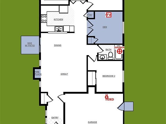 - Rooms: Kitchen, Dining Area, Den/Office, Great Room