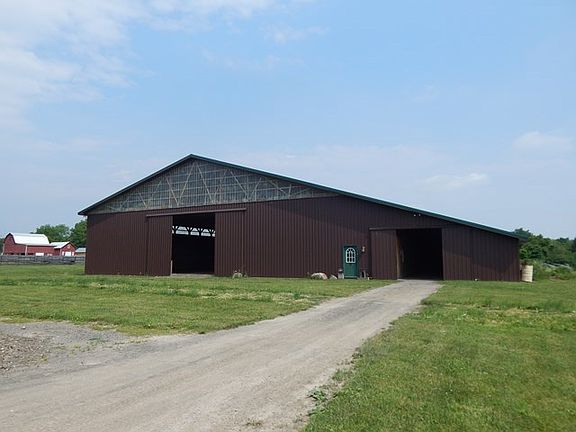 EQUINE ENTHUSIASTS! Here's your chance to own the very well established Corner Haven Farm in Trumansburg, NY! This amazing facility sits on ~32 beautiful acres right in the heart of the Fingerlakes! Property boasts huge commercial barn, a 2nd barn, indoor & outdoor arenas, level paddocks & pastures, pond & a secluded 3 bedroom 1.5 bath home w/ detached 2 story garage/workshop. Location is excellent being an established horse show venue & close to Cornell University & Ithaca College! For additional farm & business information please ask agent for information packet! House in mid-renovation.