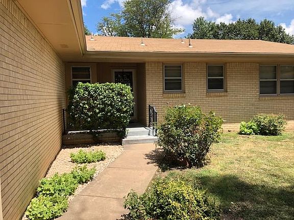 This full brick home is a gem with lawn maintenance provided by landlord! Fresh paint, new carpet, and kitchen remodel with new stainless appliances. Nestled just west of Woodlawn Village among some of the most coveted ranches in the area. 3 large bedrooms with en-suite master bedroom and 2nd full bath. Spacious living room with plenty of light and view of landscaped, fenced backyard. Main floor family room has beautiful stone wall wood burning fireplace and opens to outdoors deck. Built in Dining Hutch for storage and similar linen built-ins in the hallway. Cedar lined closet for storage as well as guest closet in the entry area. Kitchen opens to breakfast area which leads to the family room. Separate laundry room. Original tile in the entry and baths, perfectly suited to the home and the era. Backyard has a 5' privacy fence. Excellent condition! No smoking and no pets. Tenant pays for all utilities (Evergy, Kansas Gas and Water), trash service and cable/internet service. Owner pays for lawn maintenance and any HVAC repairs. Apply online using Zillow Application ($29 per applicant) or paper application at house with a $50 Application Fee.