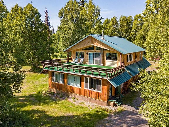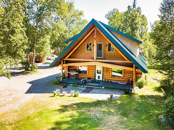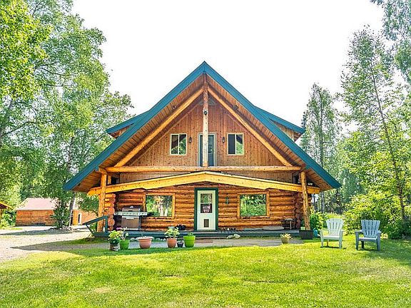Here’s your chance to own your Alaskan Dream Home near the foothills of Mt. Denali! This gorgeous 2-bedroom, 2-bath custom log home sits in the heart of Alaska’s big game country on nearly 3-acres of manicured landscape. There is direct access from the property to groomed ski trails, and the Petersville recreation area, “Alaska’s playground”, is only a few miles up the road. Near Trapper Creek Elementary School. This home is wired for on-grid electrical power via MEA, but is also wired to accept power from your generator with a flip of a switch. There is excellent WiFi connectivity through MTA, so the dream of working from the comfort of your beautiful home can be realized in Alaskan style. Water comes from a private well and is supplied via a pressurized, water-softening system. Downstairs, you will find a bright, open floorplan with a ground-level master bedroom and bathroom. The beautiful, custom, one-of-a-kind staircase leads to a very large family room upstairs, as well as a full bathroom, and three additional bedrooms. The spacious family room opens to a spectacular sundeck on the south-side of the house which is a great space for entertaining. The sundeck is plumbed and wired for a hot tub. Home offers three heating sources: fuel oil Monitor heater, electric baseboard heating, and Hearthstone Heritage woodstove. In addition, the property has a detached insulated, 2-car garage/shop with overhead winch and woodstove. There is also a large storage building and an 11-cord woodshed. Plenty of room for all your Alaskan toys. The landscape includes fruit trees, strawberries, rhubarb, currents and raspberries. And, on a clear day, you can see Mt. Denali from the property! The charming community of Trapper Creek is located at mile 115 of the Parks Highway and is just across the Susitna River from the very popular town of Talkeetna.
