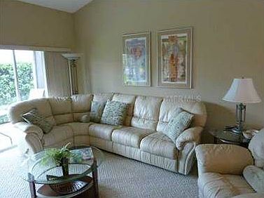 ACTIVE WITH CONTRACT Beautifully decorated and updated condo reflects what pride of ownership is all about. Meticulously maintained by the present owner with the following improvements. Complete kitchen update including appliances and lighting in June 2006, Trane central heat and air system in 2007, fresh interior paint and new 5 inch baseboards in 2009, new commode and tile in master bath in 2011, new garage door opener/keypad and 2 remotes in 2012, new washing machine and garbage disposal in 2012. I have to say this is a top of the line condo with quality carpeting in the active living areas and tile in all of the wet locations. The sectional sofa has 3 built in recliners and there is one free standing recliner. A perfect spot to watch that PGA golf tournament and then move to the pool area that is directly behind this first floor unit. It is just like having your own private pool for those late evening swims. Not to mention the private golf course for members only. The class "A" golf membership is only $376.00 per month and the monthly food minimum in the award winning restaurant is $60.00 per month. Where else can you golf and enjoy drinks and dinner for these low monthly fees. There is a one time capital contribution assessment of $3,041.00 and an annual Master Association fee of $462.35. The unit is being sold turn-key furnished and the furnishings are top quality. Brokered And Advertised By: CHARLES RUTENBERG REALTY, INC. Listing Agent: KATHY MEDOSCH