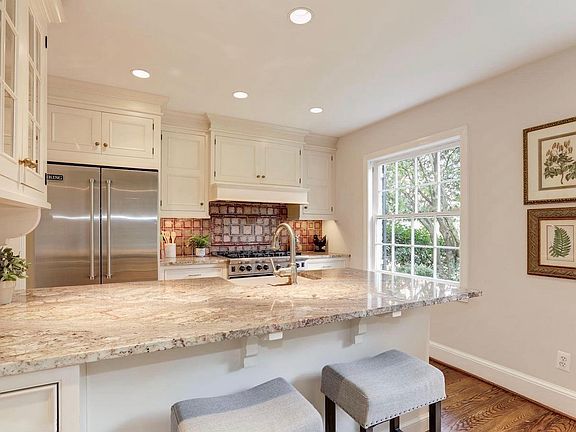 Beautiful and Unique Colonial home in Glen Echo Heights. Spacious floor plan with 5 bedrooms, 3.5 baths and comfortable living spaces inside and out. Fully renovated w/ New Windows, Newly Refinished Hardwood floors in Dark Walnut, Freshly Painted, Recessed Lighting, New Front Door, and Turn-key ready for a New Owner. Interior features:Custom White Inset Wood Kitchen Cabinets, Granite Countertops, MultipleCustom Built-in Bookcases, Gourmet Kitchen w/ breakfast bar and Viking /Wolf SS Appliances, Formal Living and Family Rooms, 2 Fireplaces, Master Bedroom with ensuite, and third floor w/ Versatile Floorplan. Exterior highlights: Professionally Landscaped Property, Multiple Gardens ,Outdoor Covered back Porch Overlooking Private fenced-in Yard, and Driveway parking. Near Glen Echo Park, C&O and Capital Crescent trails, easy access to Bethesda and Friendship Heights metro stations, and only stoplights to DC!