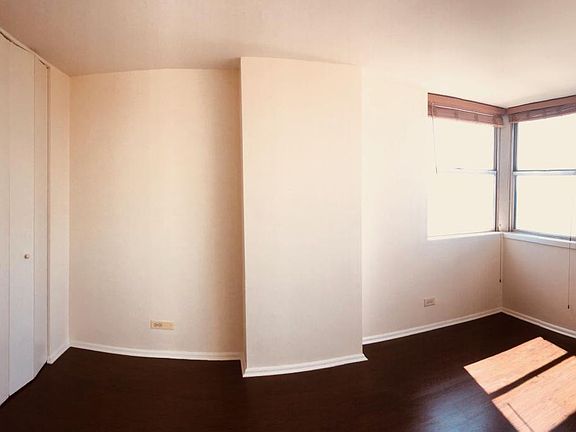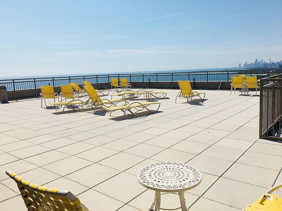Watch the sunrise over the lake from this large 1700 SF unit. Breathtaking views of the lake and downtown from this spacious 3 bedroom 2 full bath unit with balcony. Huge closets with closets dispersed throughout the unit. Great condition with nice lay-out. New flooring, vanities, fixtures, granite countertop, sink, faucet, stovetop. Full amenity building with 24 hour door staff, exercise room and roof top deck. Rent includes cable, heat, a/c and internet. Express buses to downtown at the front door. Close to red line. Very near a beautiful beach, coffee shops. Pets o.k. Rental parking available in the building. $2495 per month. Call Helen (773) 882-4887.
