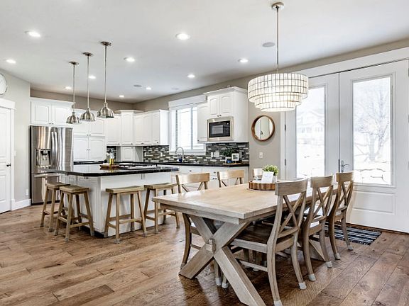 The open-concept main level features a bright and inviting living area that flows seamlessly into the dining space and modern kitchen.