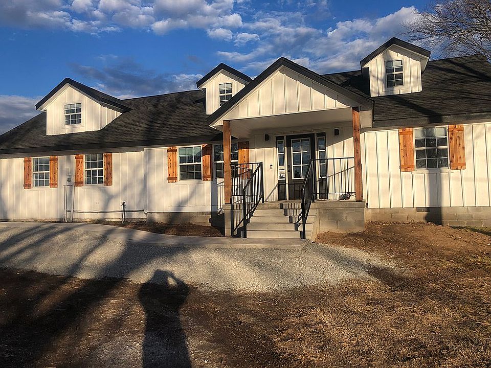 Come look at this unique place! This updated, spacious and adorable farmhouse has lots of charm. In 2023 the home was remodeled and got a new roof, gutters, new electrical wiring, and apex plumbing! The master bathroom is equipped with a new and updated walk in shower with a bench seat, a beautiful soaker tub, and all new vanities! Downstairs bathroom is a full bath with a new modern square sink and vanity as well. There is all new vinyl flooring throughout the house, including in the two living spaces! Enjoy the modern electric fireplace and pull out mantel with built in storage! The kitchen, similar to the rest of the home has some new modern amenities such as butcher block island and new Samsung range, dishwasher, and smart refrigerator! This home is very open with lots of natural light coming through the living area and kitchen, but new cellular blinds allow for privacy when needed! Storage galore with lots of space and closets! The yard is very spacious and has a new shadow box fence as well as concrete pad for a hot tub or outdoor furniture! A great place to host friends and loved ones or cozy up around a fire pit! Hot tub is not included in sale of home. Just off of the garage and backyard is a newly updated mudroom with lots of storage space and hook ups for washer and dryer. The front of the home has a stunning new front facing concrete porch with iron rails and modern craftsman style columns, new sidewalk, and driveway to make it all the more inviting! This house is close to the heart of beautiful Grove, OK and all the amenities! Very close to Littlegate addition! Give us a text or call today to get a viewing scheduled!