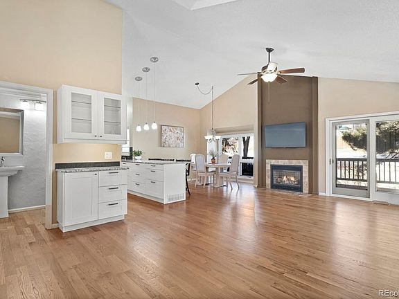 This townhome is a beautiful gem! Immaculate, bright, spacious and inviting: do not miss this lovely home in Georgetown Village. The main level offers a fully-remodeled gourmet kitchen with a massive peninsula, working/desk space, large pantry, soft-close cabinets, and even a "secret drawer" or two. There is a cozy yet roomy dining area that overlooks the greenbelt, and a large living area with a pretty gas fireplace (that can heat the whole level and the main bedroom). Upstairs you'll find the main bedroom suite with a gorgeous bathroom and massive walk in closet as well as a private balcony! On the lower level, there is a family room, a cute bright bedroom, and a full bath. This end unit has a large deck to enjoy Colorado evenings and a yard for gardening, pets, or hanging out. Throughout the home are energy-efficient additions and updated heating/cooling features. The community offers a clubhouse, tennis courts & pool and the HOA is one of the best around. You'll love this private, tucked away location. Welcome home!