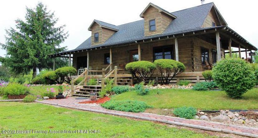 Beautiful 3 bedroom, 2 bathroom log home nestled inside 10 serene acres. Feel like you're on vacation every time you come home. Definitely an up north feel with no distractions from neighbors. Wonderful wraparound porch to enjoy the breeze or watch a rainstorm. Both bathrooms have recently been remodeled. All flooring throughout home just installed. The laundry room is conveniently located on the first floor. In floor radiant heat will be a plus this winter. Above ground pool off rear deck for summer fun. Huge pole barn that is partially finished upstairs. Abundant wildlife. Great location with a short drive to Lansing, Dewitt or St. Johns.