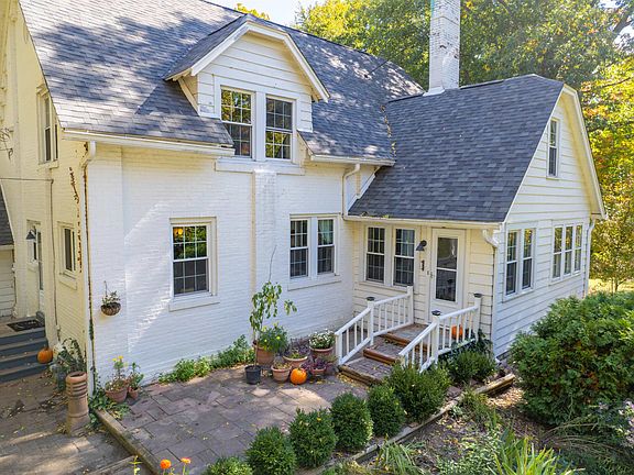 One of Kind house and grounds! This Brick Cottage is more than meets the eye perched on a bluff above Deer Creek with your own woods! Imagine yourself in the remodeled kitchen with stainless appliances including convection oven, gas cooktop, Bosch DW, breakfast bar with quartz countertops and wonderful cabinetry open to the dining room with lots of windows. The large living room features a mantle, hardwood floors, lovely foyer lined in windows, 2 main level bedrooms, updated full bathroom with built in storage. The upstairs features a fabulous family room with original wood beams, exposed brick and stained glass window with door to 2nd level deck overlooking the stunning back yard. The 2-3 additional bedrooms share a large, recently remodeled bathroom with dual sinks. The real surprise is the authentic log cabin with enormous stone mantle, loft area with half bathroom overlooking the creek. This home is a nature lovers paradise. Updates include gutting and remodeling of the kitchen, updated bathrooms, new roof to decking 2020, new septic system 2015, and many replacement windows throughout. #dreamy!