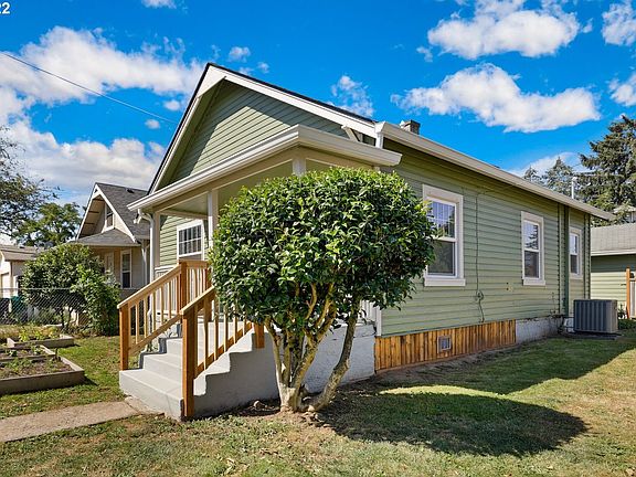 Adorable Bungalow located mere blocks to several parks & great eateries. Updated, open concept living. Kitchen boasts eating bar, wainscoting & butcher block counters, refrigerator included. Several raised beds, create an oasis for all your "Green Thumb" adventures. Updates include furnace, A/C plumbing, electric panel, gutters & exterior paint. W/D includ for move-in ready! Rare 2-car garage. Wonderfully maintained throughout. Seller's relocation is your opportunity to own this charming home! [Home Energy Score = 5. HES Report at https://rpt.greenbuildingregistry.com/hes/OR10203791]