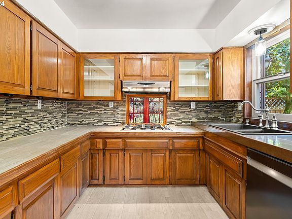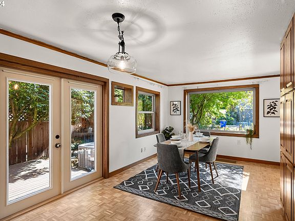 This European styled cottage is situated on a corner lot in the highly desirable Mt. Tabor neighborhood. The home is exceptionally bright and spacious, including two additional living areas and updates galore! Refinished hardwood floors in both the living room and the upstairs primary suite. The kitchen features new tile flooring and glass-front cabinet doors. A spacious dining area adjoins the kitchen and opens to a private deck through French doors, ideal for social events. Main floor features large windows that let in plenty of light; vintage oak cabinets, build-ins, irreplaceable floor to ceiling bookcases in living room opposite gas-converted fireplace. Floor to ceiling oak cabinet in dining room. The allure is amplified by a large, adaptable sunroom with refreshed floors and can seat 60 people for large gatherings. The upper floor has been converted to a primary ensuite while retaining the craftsman style woodwork original to the house. The main bathroom sports new travertine tile flooring. Fresh light fixtures, carpet, and paint adorn the main floor. The lower level (day-light basement) is fully finished with new LVT vinyl floors in main areas and porcelain tile in kitchenette and bath. Three fire-escape level windows provide safety and lots of light. Great for a guest area, family room area, a home theater, The west wing is complete with kitchenette and new cabinetry, great for a home office, workspace, or private suite. A shed wired to shop standards attached to back of west wing. Inground pool was removed and area re-landscaped for relaxing or entraining. The property A stunning carriage house is ideal for accommodating guests or family. Conveniently situated within walking distance to the park and coffee shops, this unique home has been loved by the same family since 1941. Easy transportation is available to all parts of the city via bus and MAX, both Fred Meyer and QFC are less than a mile away. [Home Energy Score = 4. HES Report at https://rpt.greenbuildingregistry.com/hes/OR10196096]