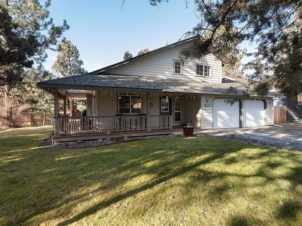 Beautifully maintained and tastefully updated, this quality custom home has a sleek and timeless design, sits on a quiet cul-de-sac in NW Bend and is walking/biking distance to the Deschutes River Trail, Sawyer Park and Riley Ranch Reserve. The open great room with soaring ceilings and skylights is spacious and bright, anchored by a cozy gas fireplace with wood and tile accents. The warm, inviting kitchen includes a breakfast bar, Corian counters and stainless appliances with an adjacent private dining area that could be used as a flex space. Large Master on the main has a walk- in closet and master bath that is beautifully appointed with granite and tile. Upstairs are two nice sized guest rooms that share an updated bath, one with built in office accents. Lovely wrap around porch, low maintenance yard, nice sized two car garage. Fabulous location near shops, medical and dining. New roof, gutters, skylights, carpet, washer, dryer and disposal within the last two years.