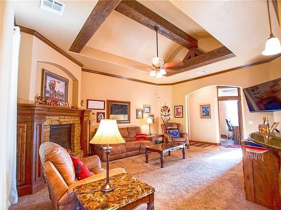 This home comes complete with 3 bedrooms, 2.5 baths, a study, small office (neither which are counted as a bedroom) and a 3 car garage to top it off. In addition to all this, the upstairs area is unfinished giving you extra room and capability to transform the space in to anything you can dream. This house has classic charm that is warm and inviting where not one detail was missed! This breathtaking home is complete with everything from Granite countertops, high ceilings with wooden beams, and stone walls. The spacious kitchen is anyone's dream to host a thanksgiving fest, dinner parties or a gathering point. The main suit features a grand walk in tile shower and a jetted tub for a relaxing spa feeling. The 3 car garage has a pull thru capability to allow easy backyard access. The back yard is complete with a storm shelter, generator hookup, gas grill with a direct gas line and pre-wired for a hot-tub. Finally, this neighborhood offers tranquility and peaceful walks.