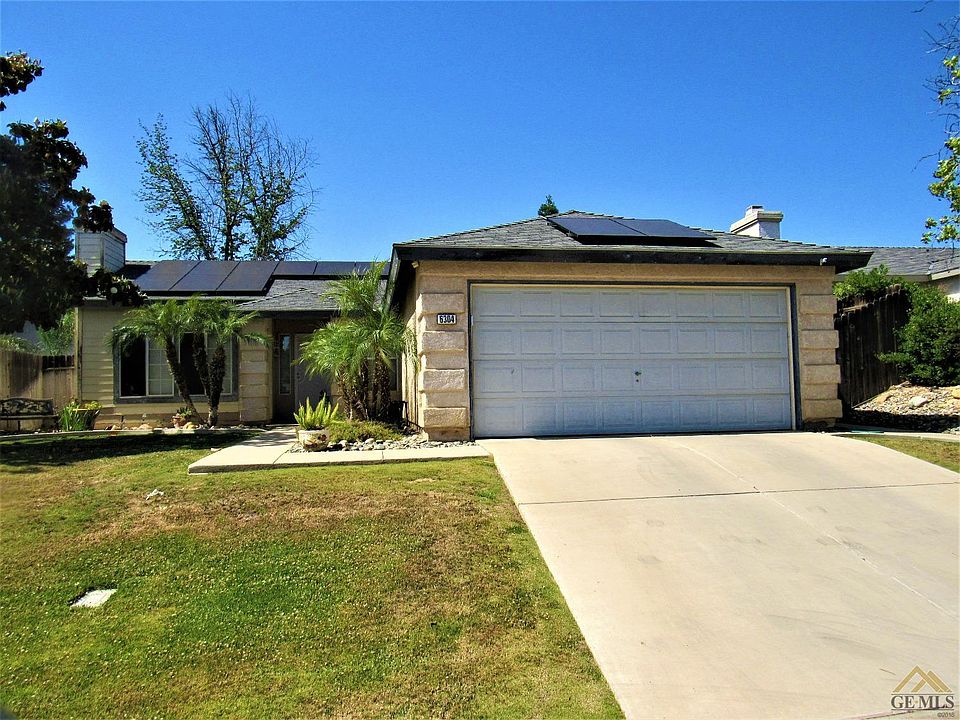 Beautiful Royal Coach Estates 3 bed/2 bath home located in a gated community with a great view of the Bakersfield hills. Spacious kitchen overlooks the living area with a cozy fireplace and laminate wood flooring. Peaceful back yard with covered patio and gazebo for extra seating. Low HOA fees provide the security of a gated community, pool, rec room and fitness room. Great energy savings with low cost solar lease.