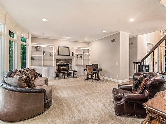 This 1.3-acre property offers privacy with year-round wildlife and a serene wooded setting. Located in the DeSoto school district, it feeds into Mill Valley High School. The chef's kitchen includes a double oven, gas range, walk-in pantry, and ample cabinet space. The home features an optional 5th bedroom converted to a fitness/golf simulator room, a massive deck, screened porch, and central audio. Additional highlights include a sprinkler system, Nest thermostats, and two HVAC units Perfect for those seeking a peaceful retreat near nature and excellent schools.