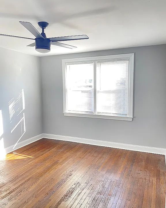 Elegant hardwood floorsCrisp white detailsLight gray walls