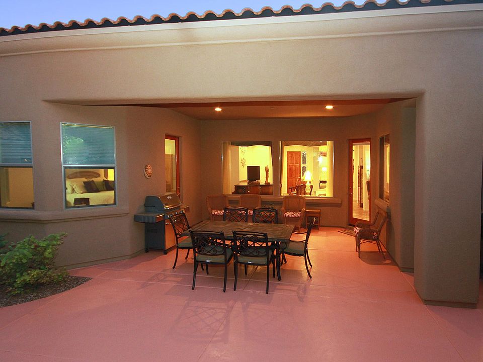 For more information on this property, contact the Listing Agent, Tim Harris at (520) 918-2463 or THarris@LongRealty.com. Beautifully upgraded La Paloma stunner with open floor plan and large living spaces. High ceilings, arched door/entry ways and an abundance of windows make this home light-filled and inviting. The kitchen features stainless appliances with a built-in Sub Zero refrigerator. The wrap around breakfast bar opens into the great room, which features a lovely fireplace. The master suite boasts his/hers closets, garden tub, large separate shower & his/hers vanity areas. Additional guest suite with private bathroom. Third room currently set up a formal dining room, but could be used as an office or den. Private rear yard with large covered patio, built-in BBQ center and bench seating.