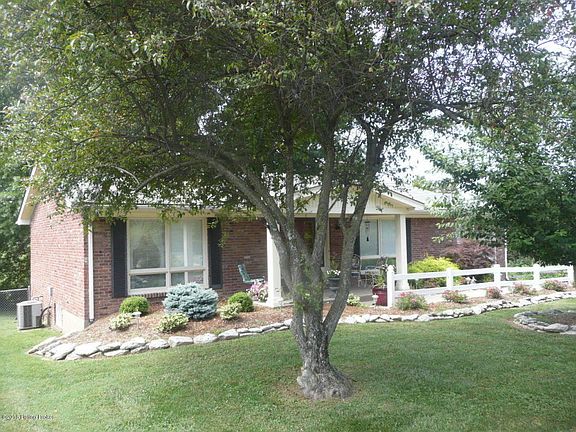 WALK-OUT RANCH, well maintained & professionally landscaped. Attached garage w/pull down stairs. Nice location within walking distance to elementary & high school. Private lot backs up to wooded farm on rear & side. Good parking for RV or boat. New roof in 2018, Andersen Windows, updated heat & air, well insulated, covered front porch entry, 2 upper bedrooms, full bath, hardwood floors, open concept living room w/kitchen access, slate foyer, walk-out covered deck w/composite floor & custom wood louvered sun blind. Lower level is great for 2nd family, small kitchen, great room, center room brick wood burning fireplace (currently gas logs), seating & game table space. 2 lower bedrooms, full bath, walk-out covered patio, fenced yard, mature trees, storage building, small tool shed.