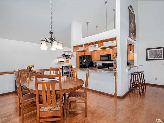 Welcome to this pristine, one-of-a-kind corner unit ranch townhome in Hanover Place! Gleaming hardwood floors and sweeping natural light complement the abundant charm and character throughout over 2,700 square feet of living space. You will be surprised and delighted by the many unique custom upgrades, including wine storage under the basement stairs, a sliding ladder reaching to sky-high shelving in the office, and a sliding bookcase guarding the coat closet! This fully updated townhome even features a home theater, with cozy theater seating and all the electronics and ambiance needed to truly enjoy the show. Bask in the beautiful Colorado weather with a wrap-around fenced in area including a deck, garden space, and patio off the primary suite. The open-concept floor plan begins in the living room, where dual sliding glass doors and soaring vaulted ceilings create a warm and welcoming space for indoor-outdoor living. In the kitchen, granite countertops, custom storage over the peninsula, and a serving window with eat-in bar overlooking the living room make entertaining a breeze! An open dining area under bright skylights ensures guests will always have a seat at your table. A statement wood beam beckons into the primary suite, as sliding glass doors offer back patio access in this relaxing oasis. Custom drawers and cubbies transform the primary walk-in closet into an envious storage experience. Step through the oversized barn door into the exquisite five-piece primary en suite bath, boasting a dual sink granite vanity, heated tile floors, and spa-esque steam shower with a soaking tub. The finished basement offers a spacious game area with a pool table and a home gym! Guests can stay in comfort with an additional bedroom and three-quarter bath in the basement. An attached two-car garage and finished attic offer storage galore! Enjoy sunny days at the community pool, and easy access to the Highline Canal Trail from the Centennial Link trail just north of the home.