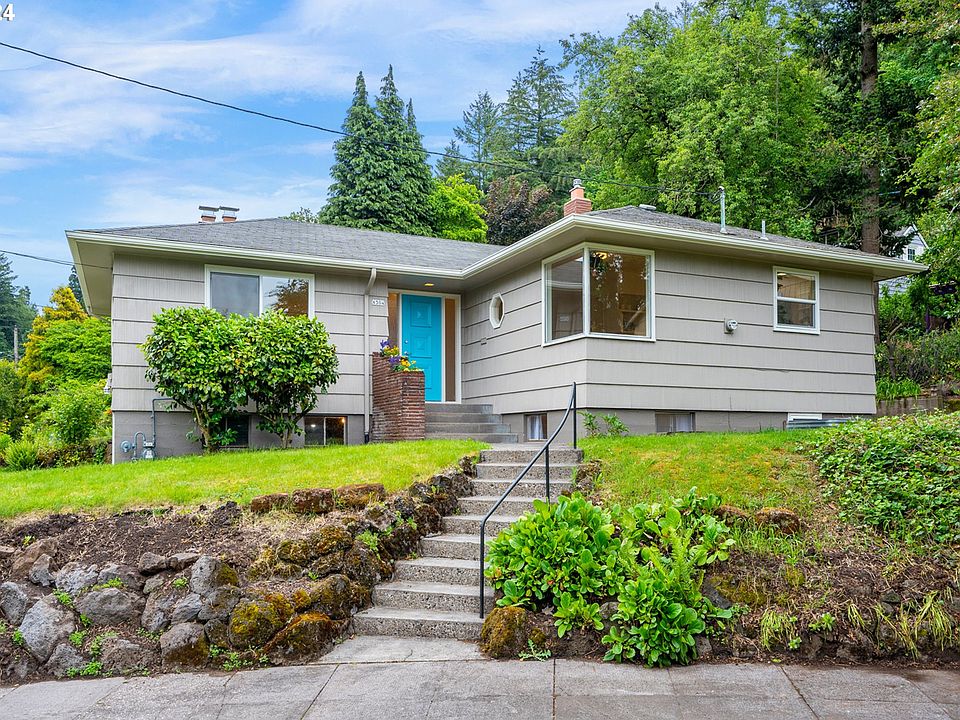 Discover the timeless allure of this 1953 gem, ideally situated on a tranquil street on the west side of Mount Tabor. The moment you step through the classic mid-century front door, you are greeted with stunning hardwood floors and a light-drenched living room framed with huge picture windows and anchored by a cozy wood-burning fireplace. The perfectly vintage eat-in kitchen features original solid wood cabinets with curved corners and updated appliances. Mid-century charm continues through the main bathroom and hallway built-ins...complete with secret compartment. The lower level offers a third bedroom, an additional bathroom, a spacious laundry room, and a two-car garage. Enjoy beautiful Portland sunsets from your large west-facing patio. Updates include a new electrical panel, some updated windows, refinished hardwoods and new int/ext paint. Neighborhood hot spots such as Coquine, Bellwether Bar, Blind Onion Pizza, and the ever-amazing Mt Tabor Park, are just a few blocks away, making this quiet section of the Tabor Heights neighborhood a true a treat!OFFER DEADLINE Monday, June 10 @ 11am. [Home Energy Score = 4. HES Report at https://rpt.greenbuildingregistry.com/hes/OR10228875]