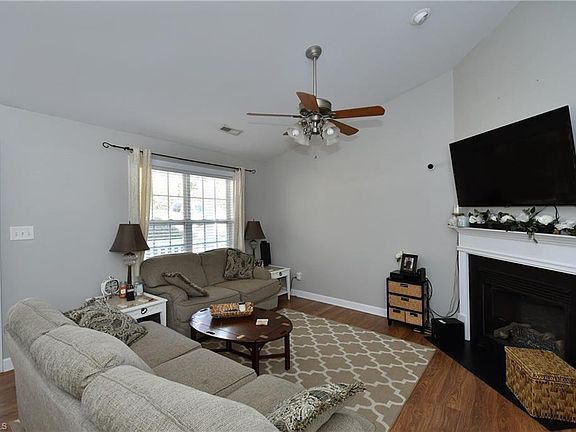 Been waiting for a 3 BR, 2 bath, one-level home with southern charm? This is it! Be welcomed by a rocking chair front porch & enter into the great room with vaulted ceilings & gas log fireplace. Updated kitchen has white cabinetry, tile back splash, double pantry & large breakfast area with triple window - stainless fridge remains! Grill out on the deck overlooking the HUGE FENCED IN BACKYARD with dog run & storage building. Master BR has vaulted ceilings, walk-in closet, double vanities & garden tub.