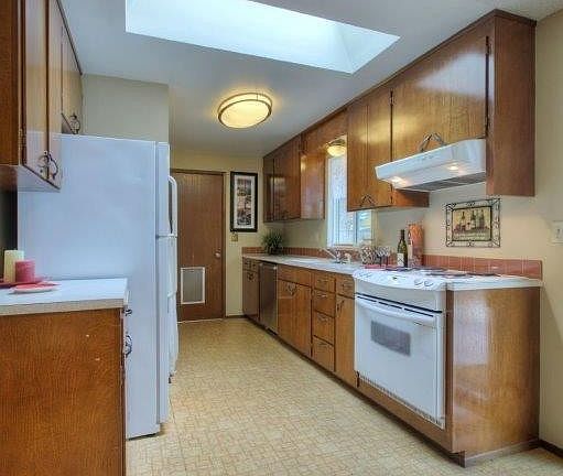 3 bedroom ¾ bath mid-century rambler has been freshly painted inside and out, has double paned vinyl windows, skylights, a 2 car garage, and wheelchair access. The eastern exposure provides abundant afternoon sun in the large level backyard ideal for entertaining or relaxing. Refrigerator, dishwasher, range/oven, newer front loading washer & dryer all stay! Home is on a quiet limited access street close to I-5, Boeing, shopping, schools and parks. This clean and well maintained home won't last!
