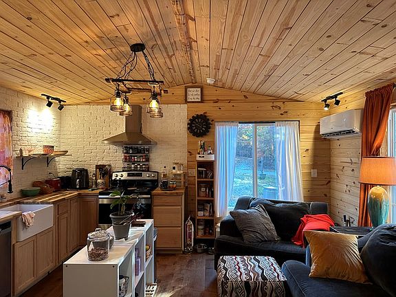 Perfect small home on an amazing 5 acres corner lot with a creek. The property is very usable and has plenty of room for barns and animals. Brand new tile floors, and back splash. Very nice back deck, an 8x10 shed and 25000 BTU mini split AC unit installed. City water fiber optic internet also installed. There is an additional 50 amp RV hookup for all your guests.