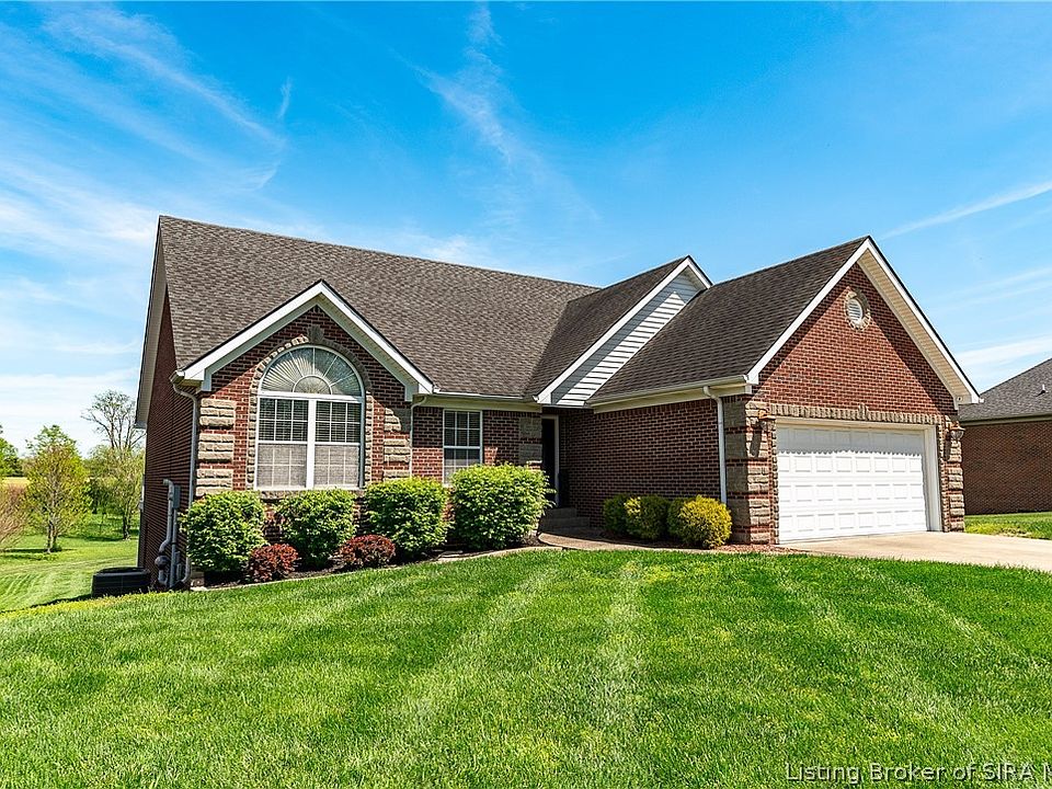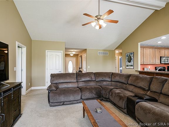 This beautiful brick/stone ranch home in Whispering oaks II is located in a fabulous location in between Sellersburg and the growing River Ridge development on Highway 62 and offers 4 bed, 3 full baths and approximately 3,300 finished living space! This home boast a functional wide open floor plan great for entertaining and offers a vaulted great room w/ gas fireplace, well equipped kitchen with an abundance of cabinet space and walks out to a nice deck area overlooking the grounds. This is a split bedroom floor plan and the owners suite is large and offers a huge walk in closet, en suite bath with a tub and shower, and tray ceiling! Going down to the lower level, it is a wide open space with plenty of room to spread out and boast a big 4th bedroom, full bath, storage area and walks out to a covered patio! This home is within walking distance to the neighborhood POOL and CLUBHOUSE making it super convenient to enjoy those amenities!